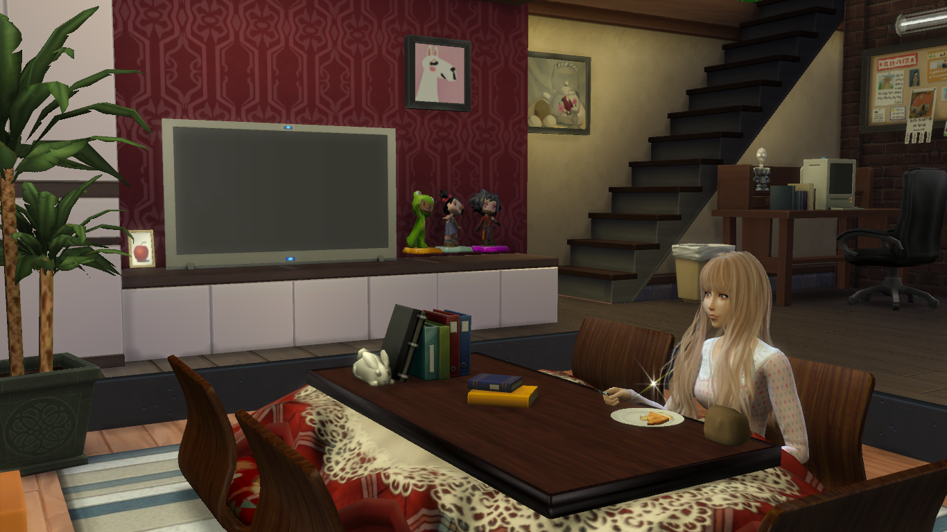 にゃーん(自分用メモ)自分用メモ。PAGE | 936 927 930 916 888 875 882 945 944 861 854 | 2016.04.02 Sat 00:00:00 SIMS4記録:かわいいかわいすぎ。SIMS4がこのシムを眺めるだけのゲームと化してしまったww 某着ぐるみ風のCCを着せたら、あまりにもかわいすぎてわろた。かわいすぎてSIMS3に戻れないwwww 作者さんは神様か何かか。(どのMOD・CCの作者さんも神様みたいなものだけど。) 造形の違いとか、できることの差があるから、3と4を並行してプレイしようと思ってたけど、 頑張って3のシム達を4で再現して、4メインにしちゃおうかなあ…。そう思ってしまうほどかわいい。 ※使用させて頂いた全てのMOD・CCの制作者様に感謝を。 ※自宅LOTは、こちらの動画で紹介されていたものを使用させて頂きました。 かわいい。 ハグしてるところ。かわいい。 おいしかったらしい。 ずっと気になっていた某こたつCCを導入。 あーこの感じ。いいな。 ついでなので、某所の情報を参考にして土台を下げてみた。ピットリビングというらしい。 壁で仕切られていないのに、一段下げただけで別の空間になってしまう。面白い。 家は某動画サイトで紹介されていたものをDLして(アレンジして)使ってます。前回も書いたけど一応。 ひとつのものに少しずつ手を入れて長く使っていくのが好きなので、この家は多分ずっと使い続けると思う。いい家だと思う。 かわいい。 こたつはダイニングテーブル扱いらしいので、元からあったダイニングテーブルは売却。 空いたスペースにソファや机、イーゼルを置いてみた。 描いてる絵までかわいい。かわいいシムがかわいい絵ばかり描いてて、ますますかわいく思えてしまう。(こたつのSSに映っている壁の絵は、このシムが描いたもの。) PR |